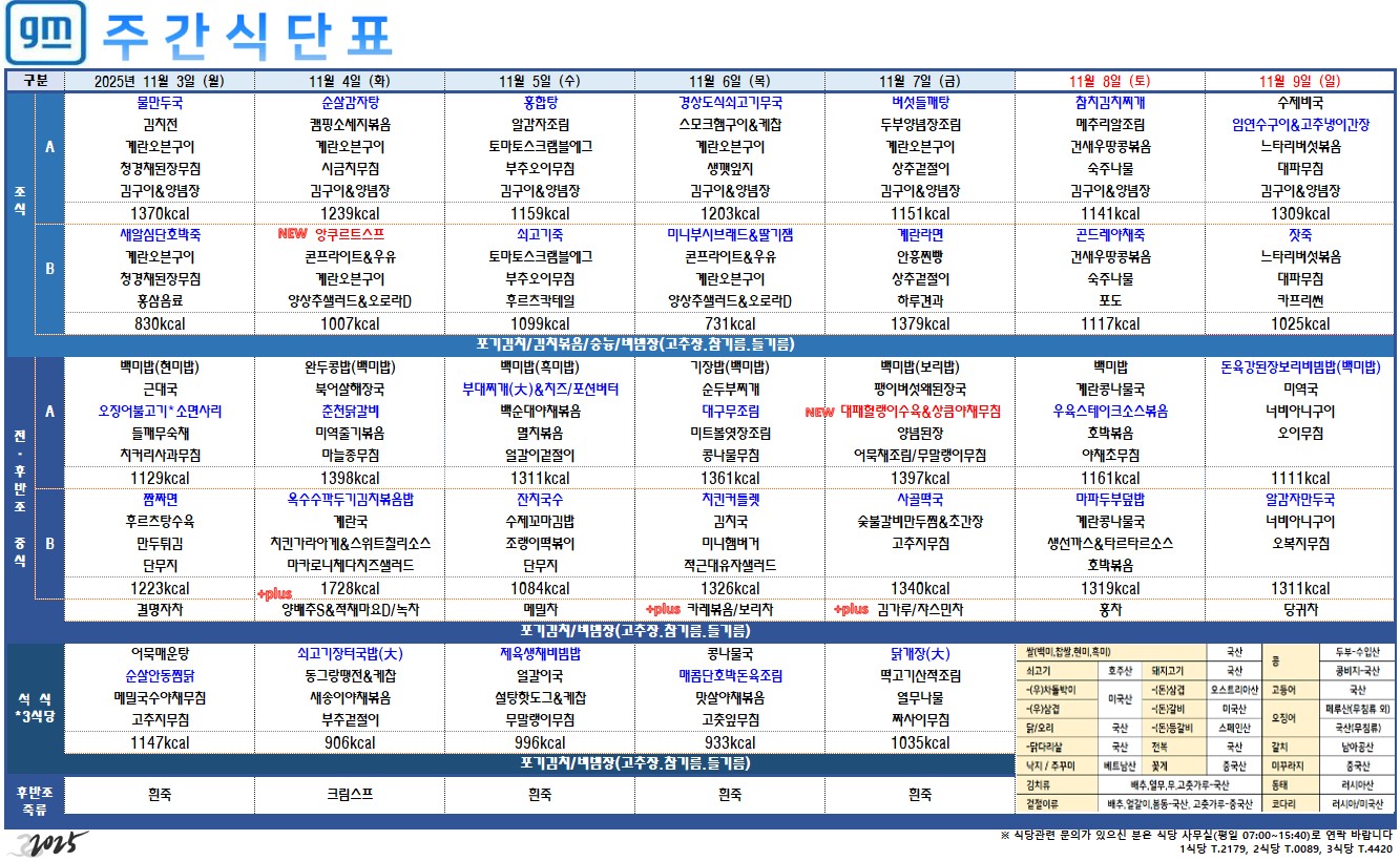 [25. 11/03 ~ 11/09] 주간식단표 입니다.