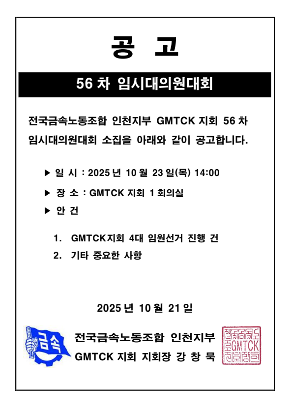 [선관위] GMTCK지회 제4대 임원선거 공고