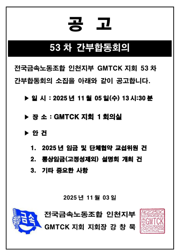 [총회공고] GMTCK지회 4기 임원선거 투표 공고